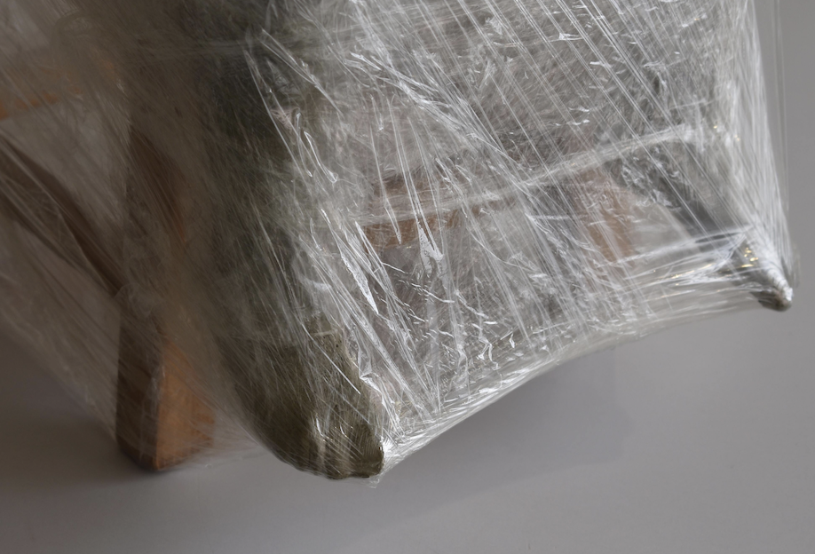 layers of bubble wrap. This act begins with the artist’s own hands—